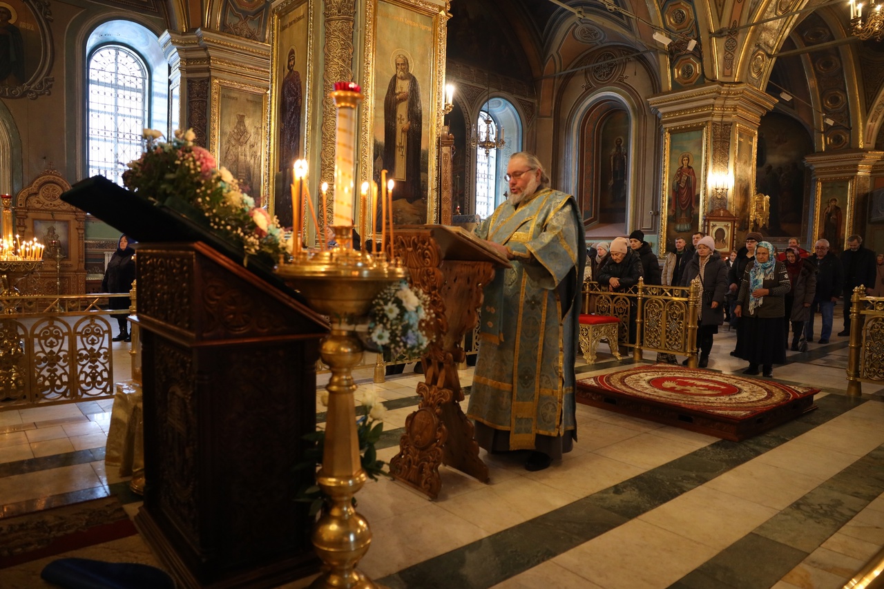 Его Преосвященству сослужили клирики кафедрального храма. Богослужебные песнопения исполнил хор под управлением Татьяны Тоболиной.